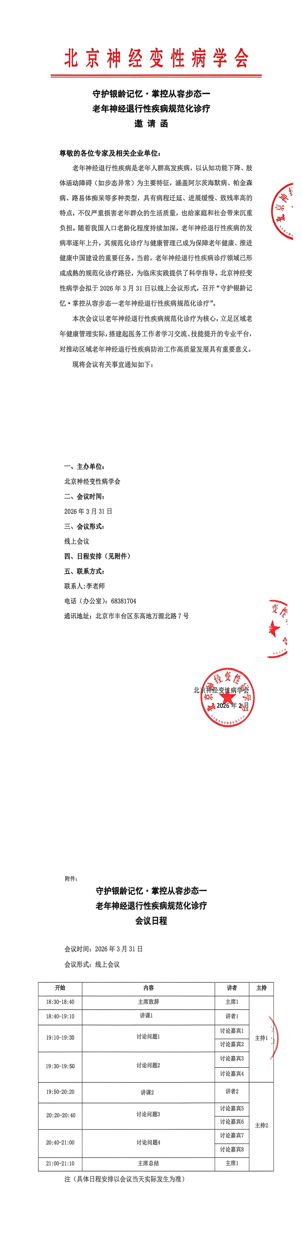 守护银龄记忆·掌控从容步态一老年神经退行性疾病规范化诊疗 邀请函