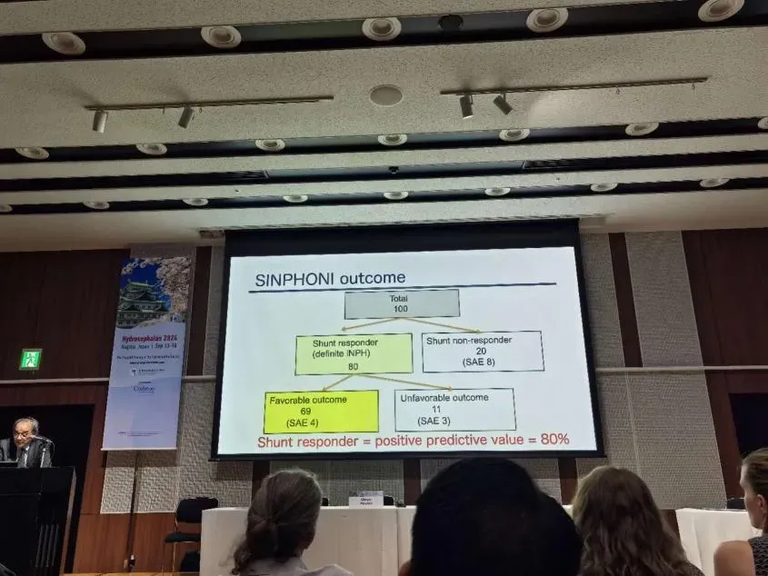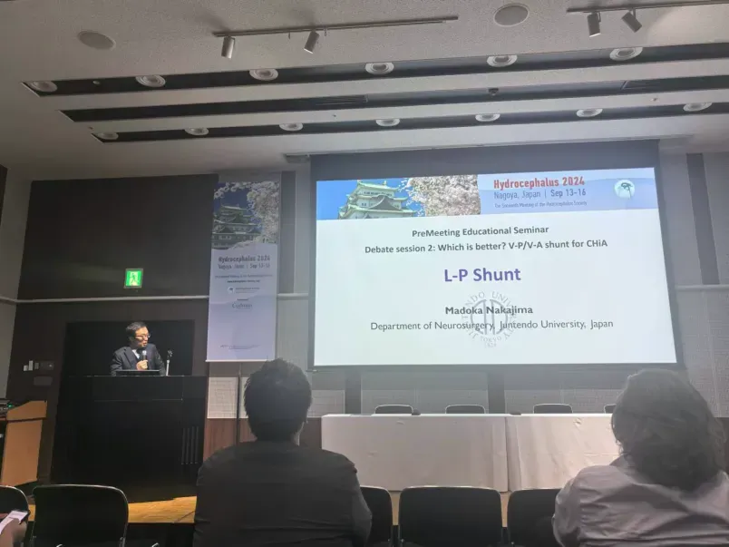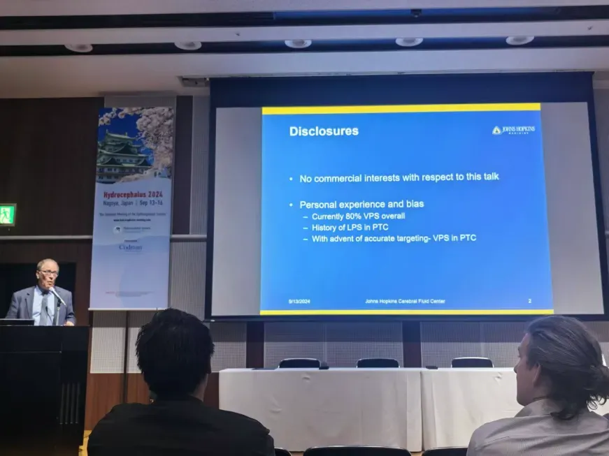 Madoka Nakajima 教授则讨论 "L-P Shunt" 的优势,这是一种将脑脊液从腰大池引流到腹腔的手术,他分享了日本大型SINPHONI研究,认为LPS疗效确切,大部分iNPH患者有脑血管病高危因素,相比于VPS可减少对大脑创伤减少穿刺道出血,更适合老年人。而且指出研究发现很多部分iNPH患者合并有阿尔茨海默病(AD)病理表现,根据最新研究结果这部分患者未来可能从单克隆抗体治疗中获益,但应用单克隆抗体治疗对于有脑损伤的患者会加重水肿出血等风险,LPS可避免脑创伤减少这部分患者应用单克隆抗体治疗的风险。该论点的提出不由使人耳目一新,与时俱进在脑积水的治疗方面体现的淋漓尽致。